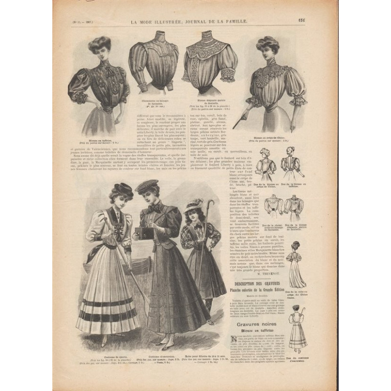 Chaque magazine présentait des modèles de robes , de lingerie , de corsets , mais aussi des vêtements d’enfants ou habits de poupées , avec de magnifiques gravures et les explications des modèles .