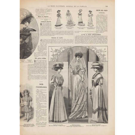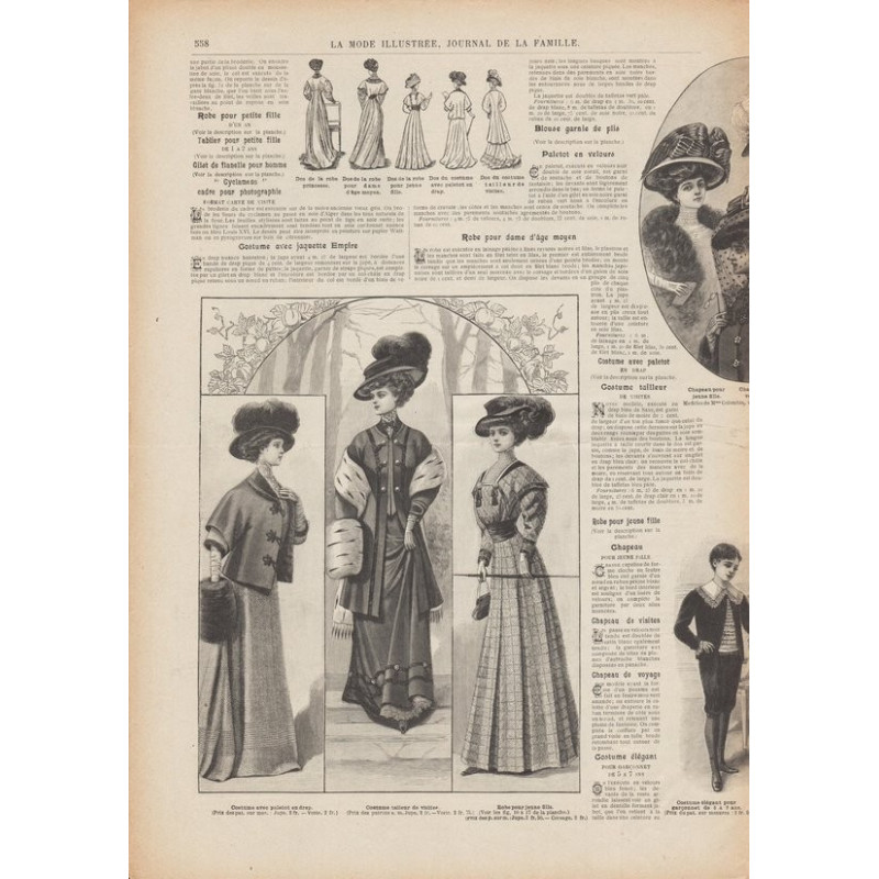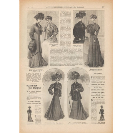 Chaque magazine présentait des modèles de robes , de lingerie , de corsets , mais aussi des vêtements d’enfants ou habits de poupées , avec de magnifiques gravures et les explications des modèles .