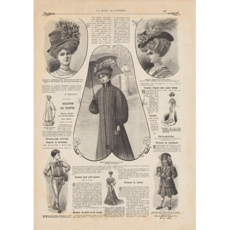 Chaque magazine présentait des modèles de robes , de lingerie , de corsets , mais aussi des vêtements d’enfants ou habits de poupées , avec de magnifiques gravures et les explications des modèles .