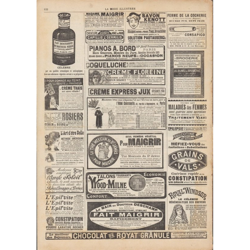La Mode Illustrée paraissait toutes les semaines, et était accompagnée d’une planche de patrons tous les quinze jours en moyenne.