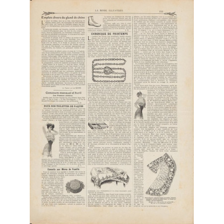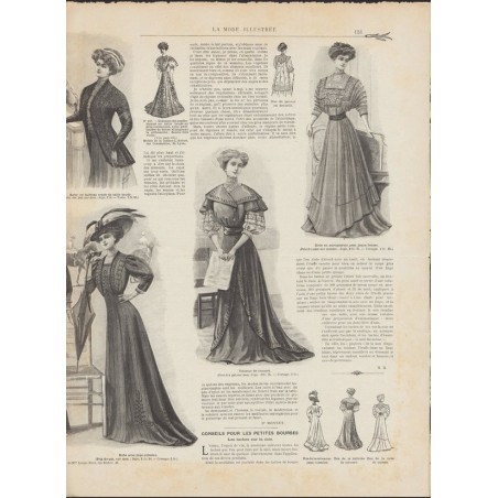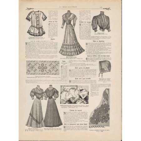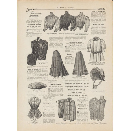 Chaque magazine présentait des modèles de robes , de lingerie , de corsets , mais aussi des vêtements d’enfants ou habits de poupées , avec de magnifiques gravures et les explications des modèles .