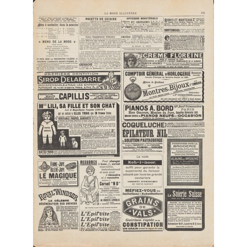La Mode Illustrée paraissait toutes les semaines, et était accompagnée d’une planche de patrons tous les quinze jours en moyenne.