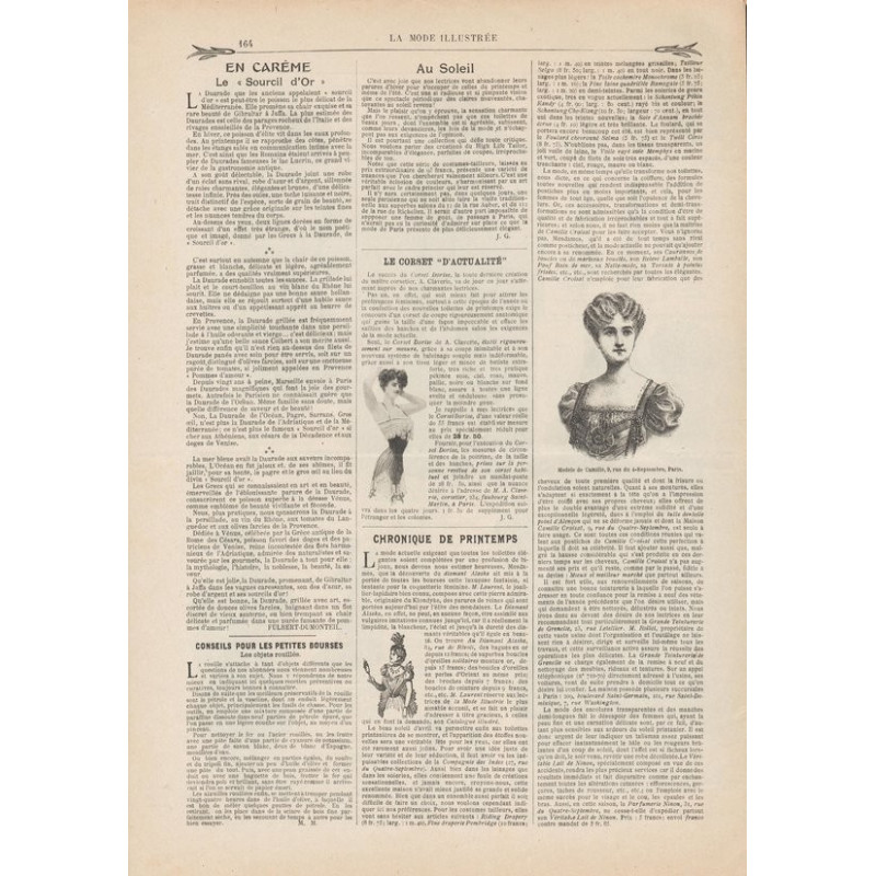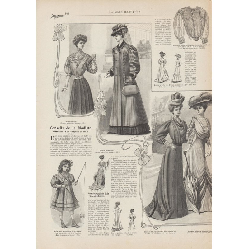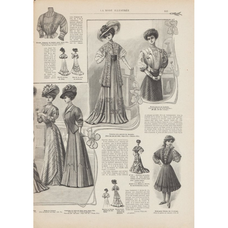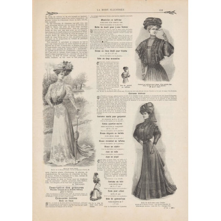 Chaque magazine présentait des modèles de robes , de lingerie , de corsets , mais aussi des vêtements d’enfants ou habits de poupées , avec de magnifiques gravures et les explications des modèles .