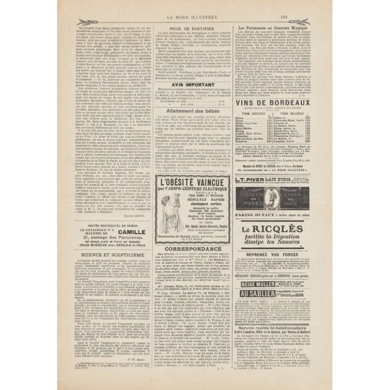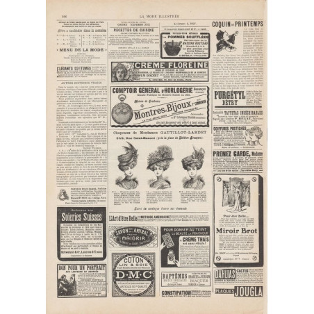 La Mode Illustrée paraissait toutes les semaines, et était accompagnée d’une planche de patrons tous les quinze jours en moyenne.