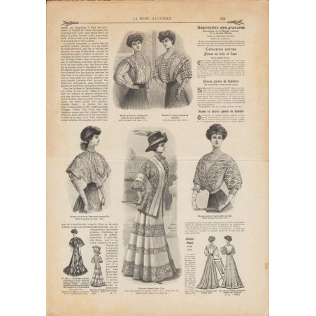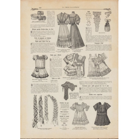 Chaque magazine présentait des modèles de robes , de lingerie , de corsets , mais aussi des vêtements d’enfants ou habits de poupées , avec de magnifiques gravures et les explications des modèles .