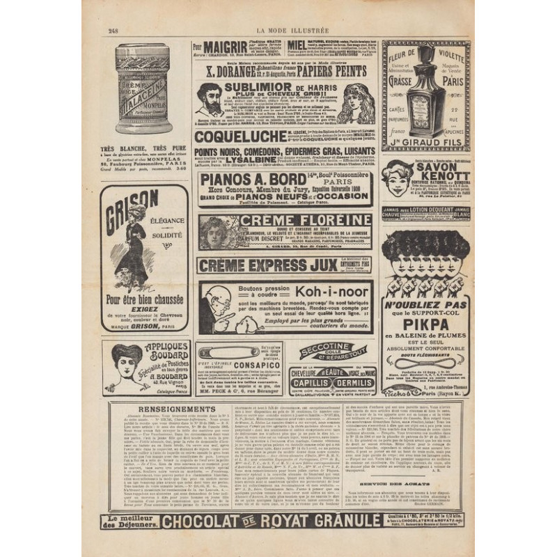 La Mode Illustrée paraissait toutes les semaines, et était accompagnée d’une planche de patrons tous les quinze jours en moyenne.