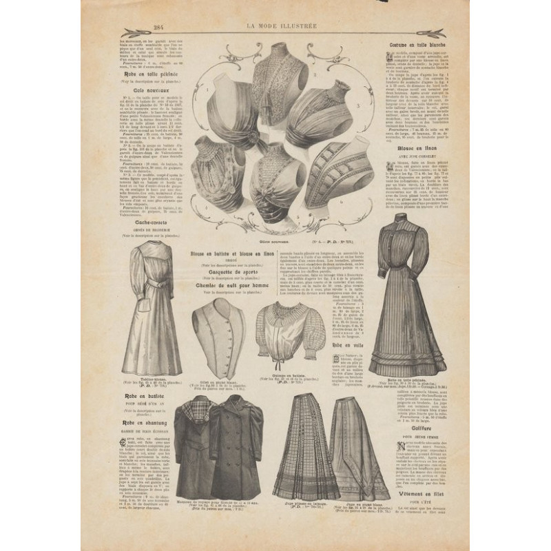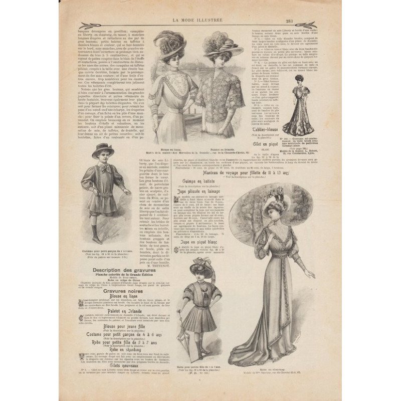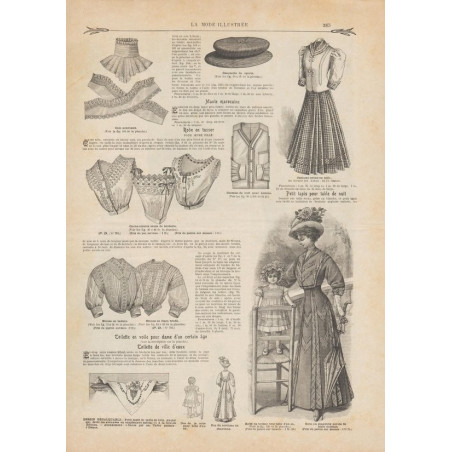 Chaque magazine présentait des modèles de robes , de lingerie , de corsets , mais aussi des vêtements d’enfants ou habits de poupées , avec de magnifiques gravures et les explications des modèles .