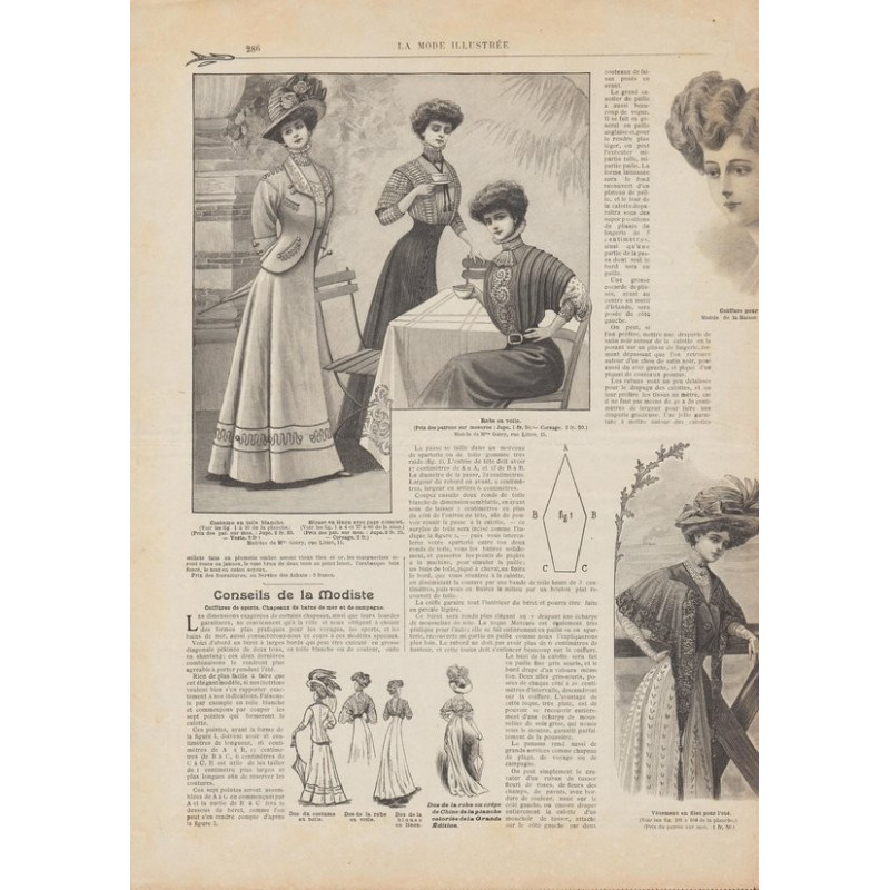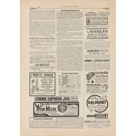 La Mode Illustrée paraissait toutes les semaines, et était accompagnée d’une planche de patrons tous les quinze jours en moyenne.