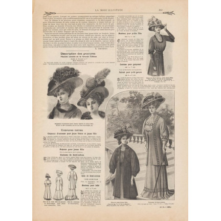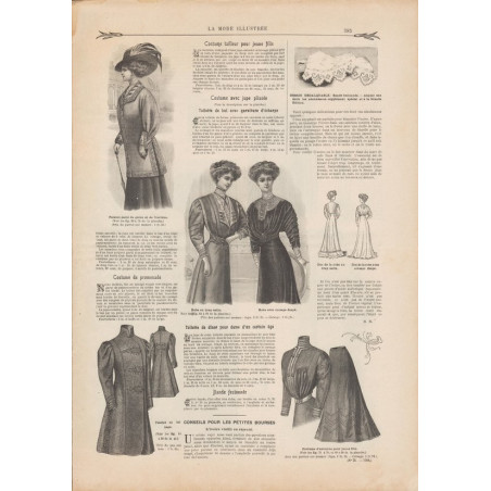 Chaque magazine présentait des modèles de robes , de lingerie , de corsets , mais aussi des vêtements d’enfants ou habits de poupées , avec de magnifiques gravures et les explications des modèles .