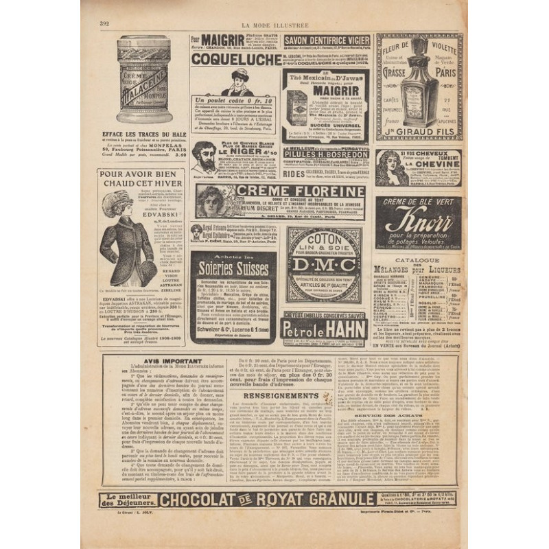 La Mode Illustrée paraissait toutes les semaines, et était accompagnée d’une planche de patrons tous les quinze jours en moyenne.