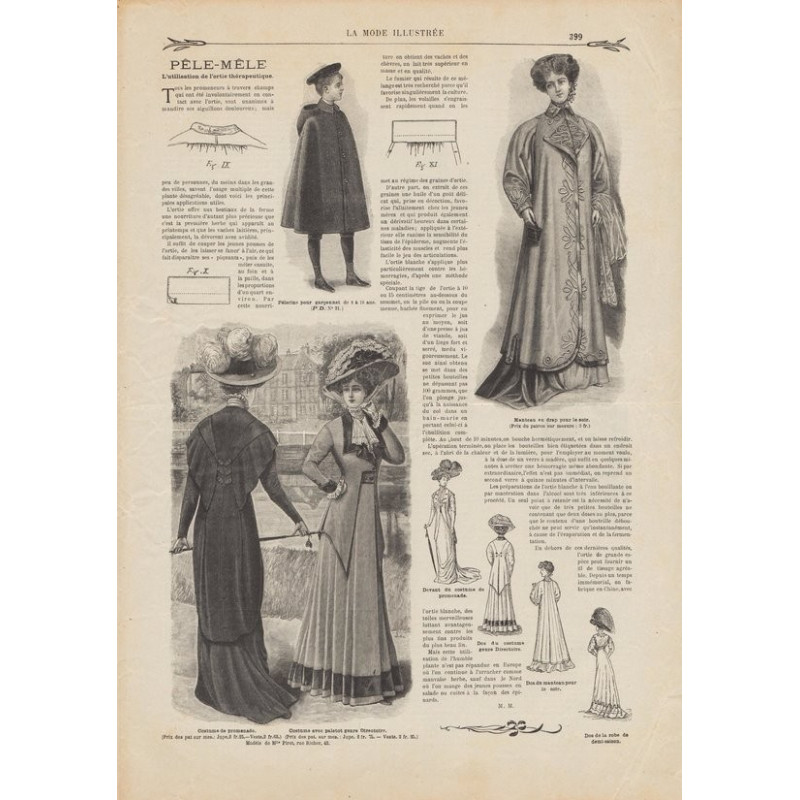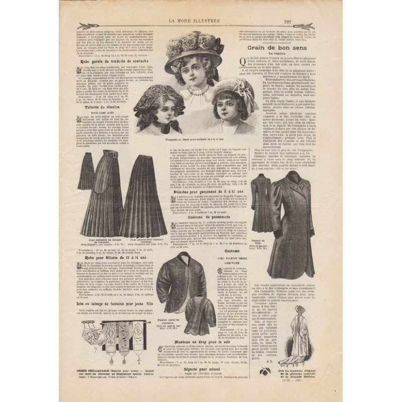 Chaque magazine présentait des modèles de robes , de lingerie , de corsets , mais aussi des vêtements d’enfants ou habits de poupées , avec de magnifiques gravures et les explications des modèles .
