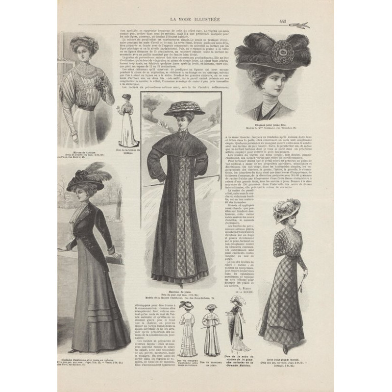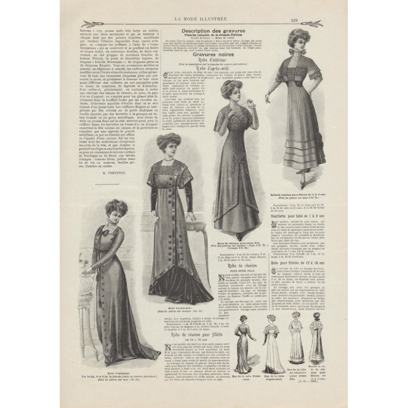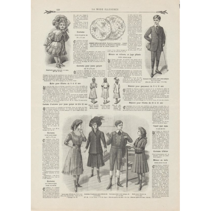 Chaque magazine présentait des modèles de robes , de lingerie , de corsets , mais aussi des vêtements d’enfants ou habits de poupées , avec de magnifiques gravures et les explications des modèles .