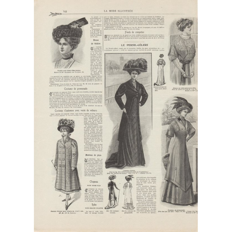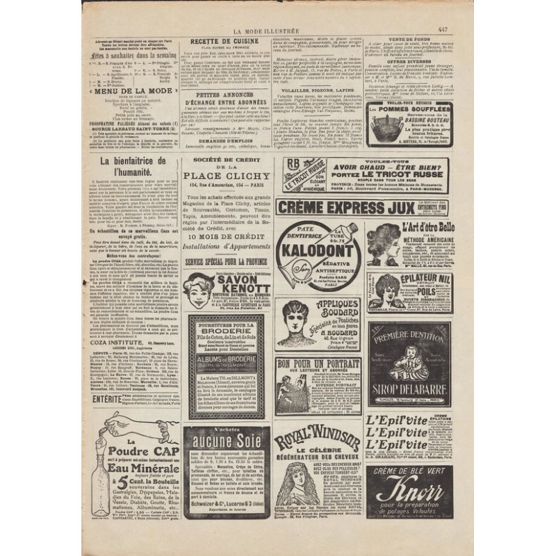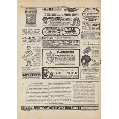 La Mode Illustrée paraissait toutes les semaines, et était accompagnée d’une planche de patrons tous les quinze jours en moyenne.