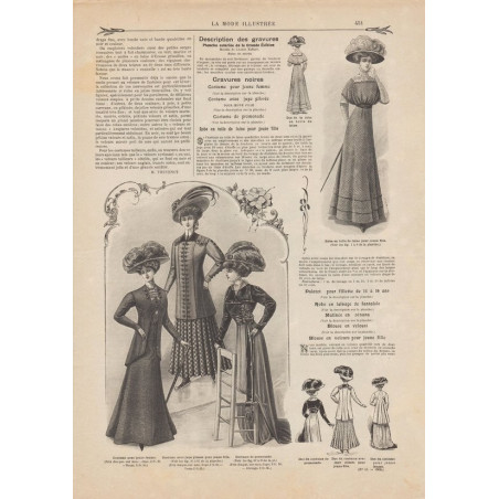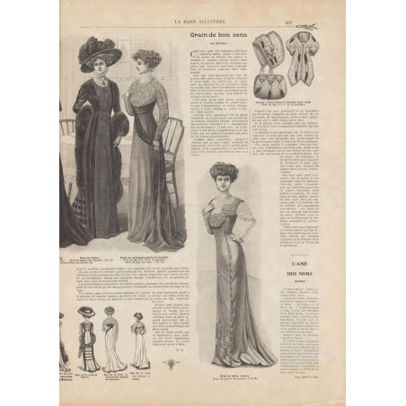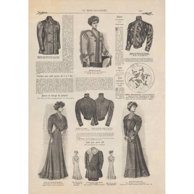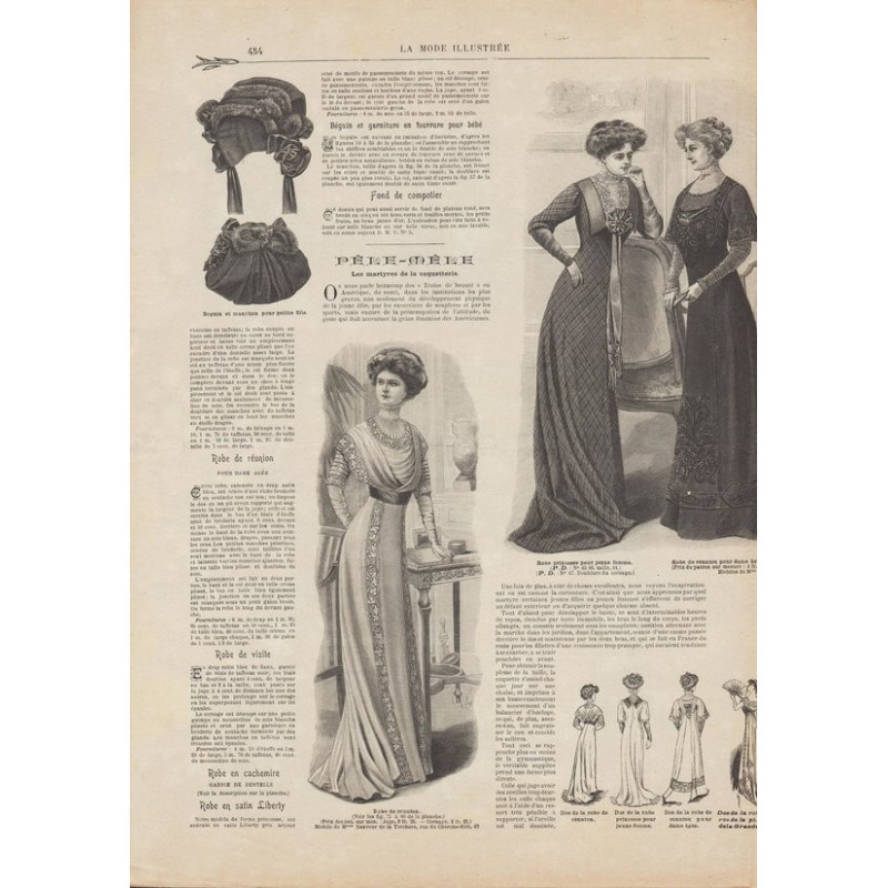 Chaque magazine présentait des modèles de robes , de lingerie , de corsets , mais aussi des vêtements d’enfants ou habits de poupées , avec de magnifiques gravures et les explications des modèles .