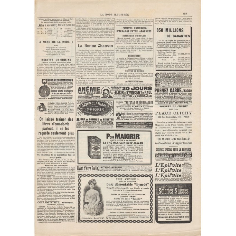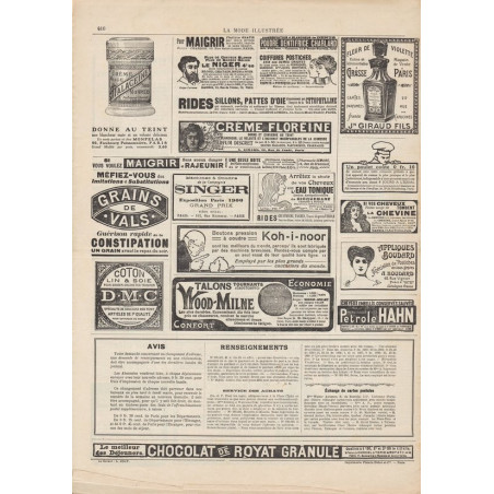 La Mode Illustrée paraissait toutes les semaines, et était accompagnée d’une planche de patrons tous les quinze jours en moyenne.
