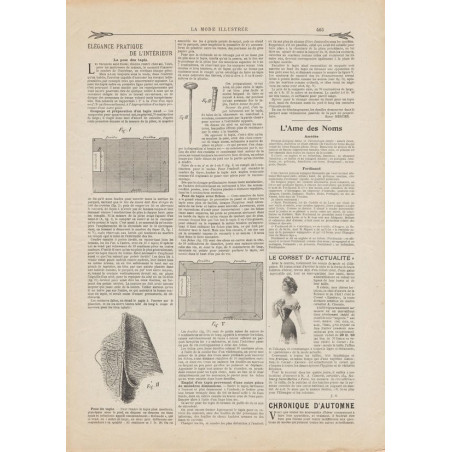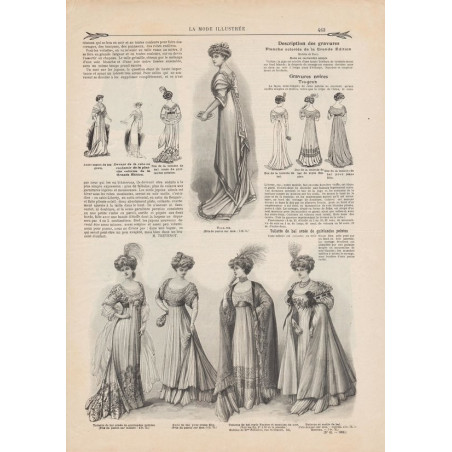 Chaque magazine présentait des modèles de robes , de lingerie , de corsets , mais aussi des vêtements d’enfants ou habits de poupées , avec de magnifiques gravures et les explications des modèles .