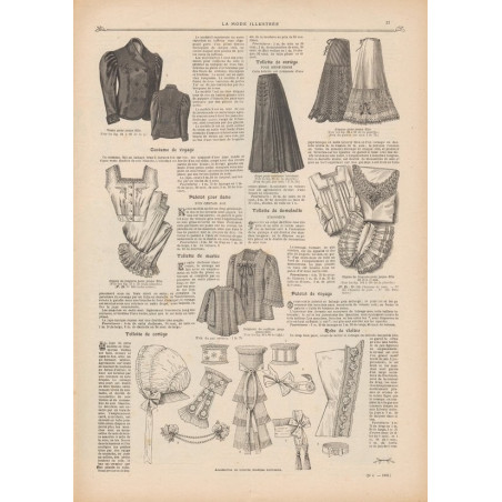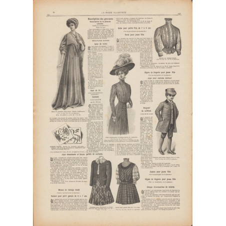 Chaque magazine présentait des modèles de robes , de lingerie , de corsets , mais aussi des vêtements d’enfants ou habits de poupées , avec de magnifiques gravures et les explications des modèles .