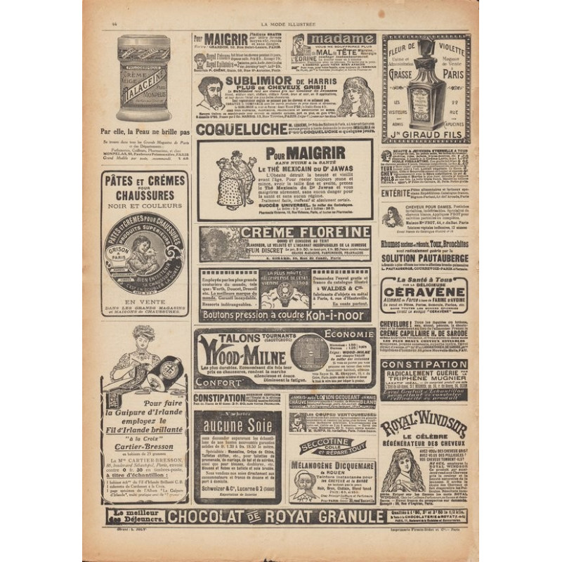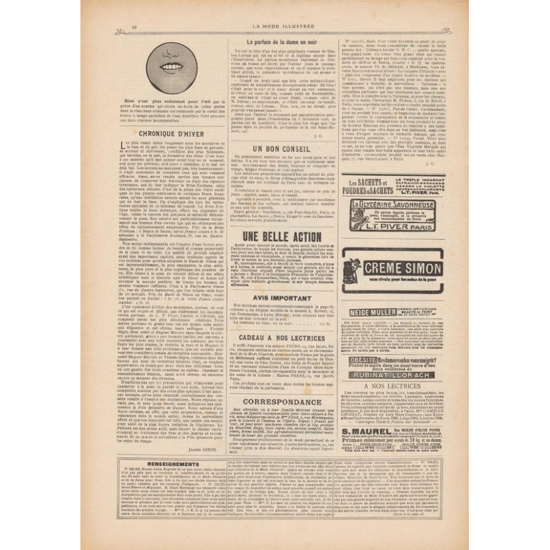 La Mode Illustrée paraissait toutes les semaines, et était accompagnée d’une planche de patrons tous les quinze jours en moyenne.