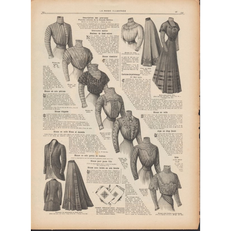 Chaque magazine présentait des modèles de robes , de lingerie , de corsets , mais aussi des vêtements d’enfants ou habits de poupées , avec de magnifiques gravures et les explications des modèles .