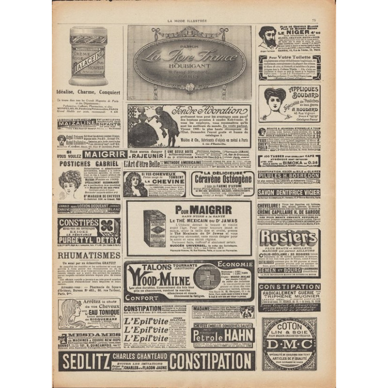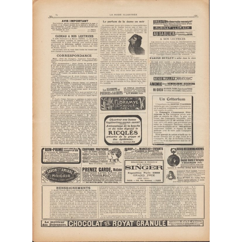 La Mode Illustrée paraissait toutes les semaines, et était accompagnée d’une planche de patrons tous les quinze jours en moyenne.
