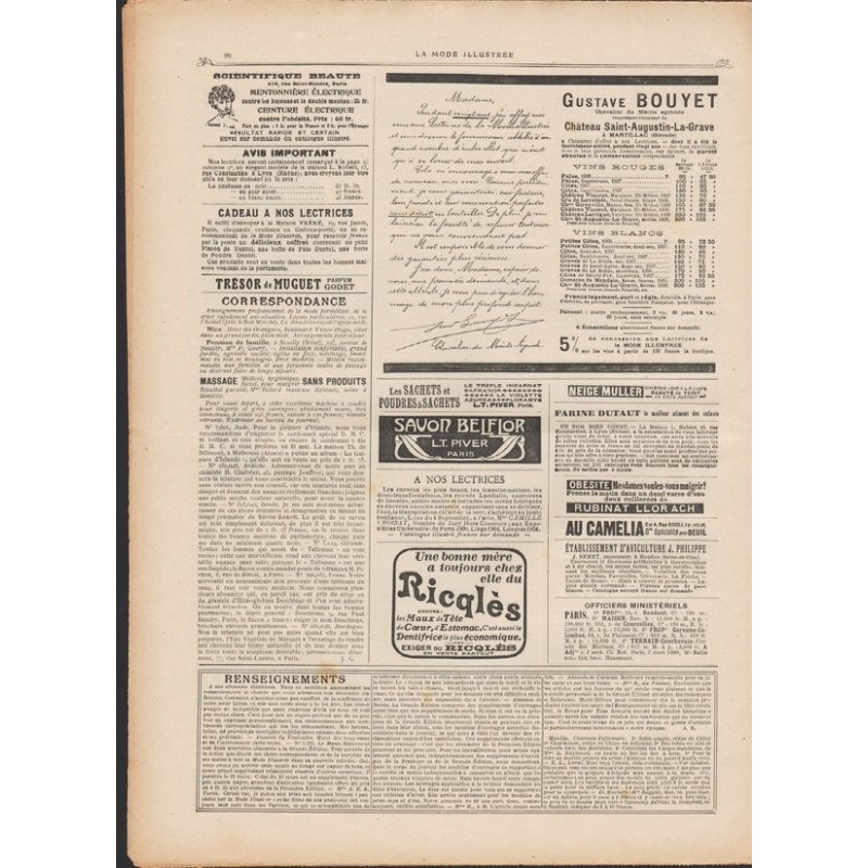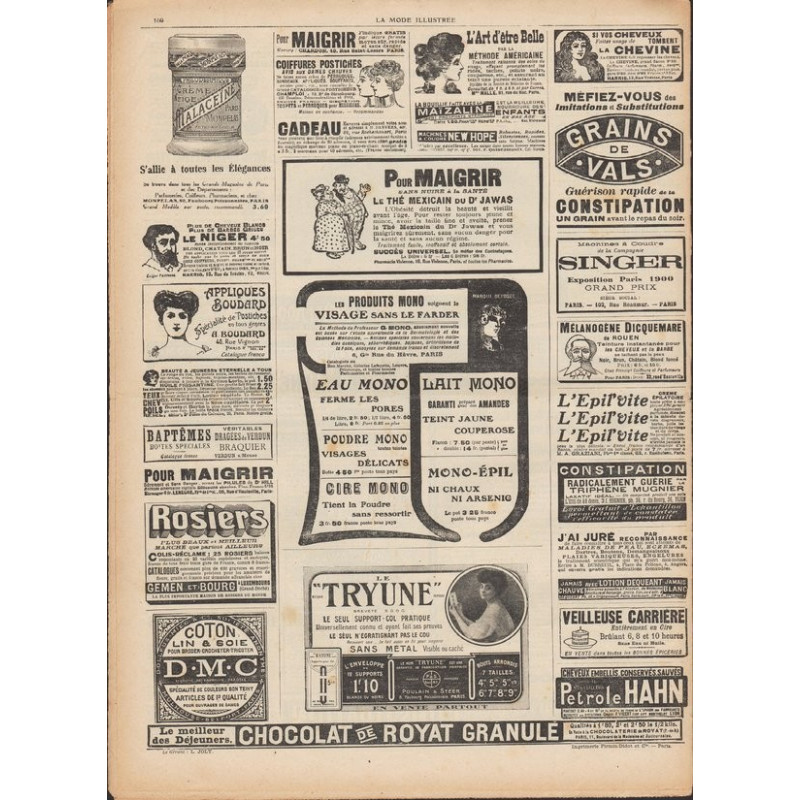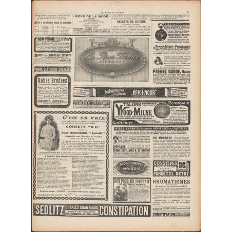 La Mode Illustrée paraissait toutes les semaines, et était accompagnée d’une planche de patrons tous les quinze jours en moyenne.