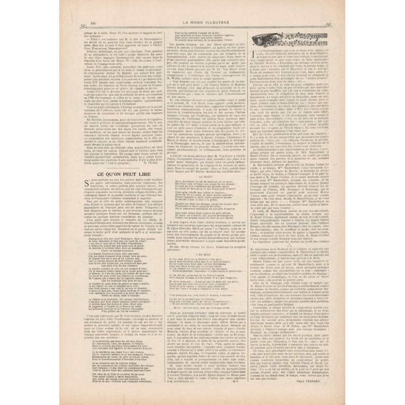 La Mode Illustrée paraissait toutes les semaines, et était accompagnée d’une planche de patrons tous les quinze jours en moyenne.
