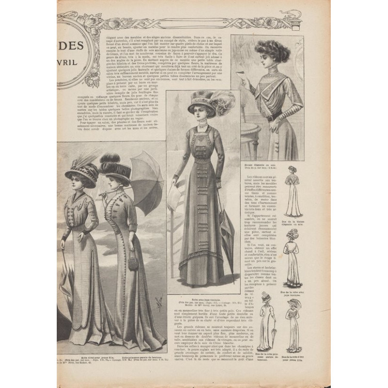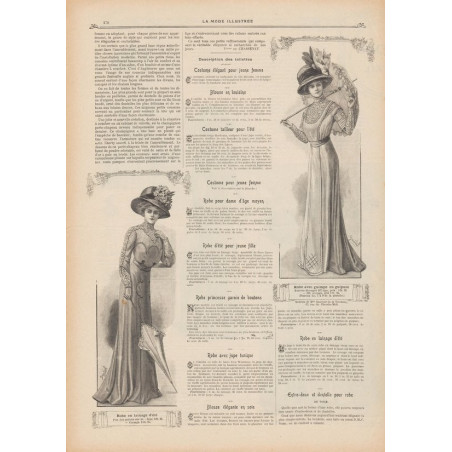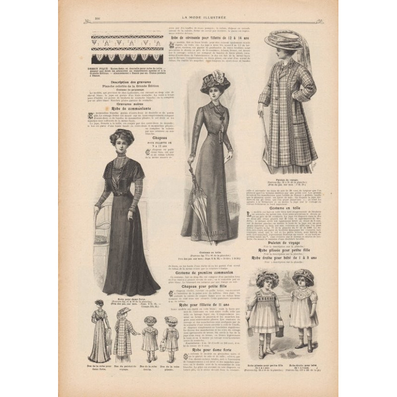 Chaque magazine présentait des modèles de robes , de lingerie , de corsets , mais aussi des vêtements d’enfants ou habits de poupées , avec de magnifiques gravures et les explications des modèles .