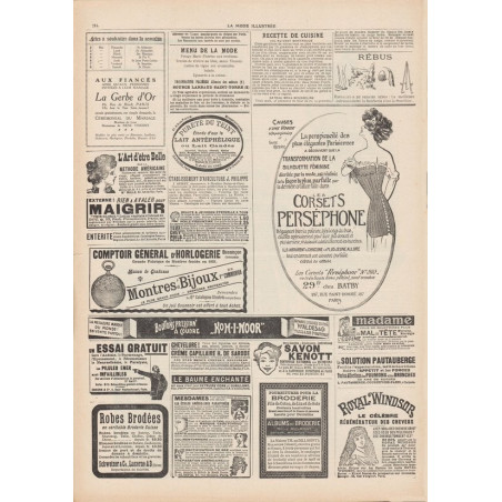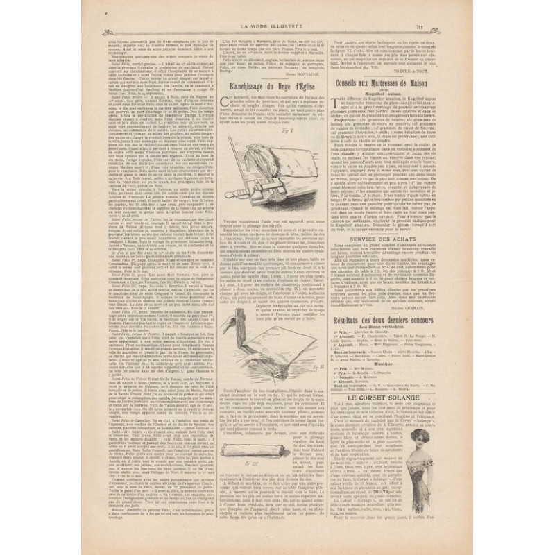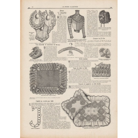 Chaque magazine présentait des modèles de robes , de lingerie , de corsets , mais aussi des vêtements d’enfants ou habits de poupées , avec de magnifiques gravures et les explications des modèles .