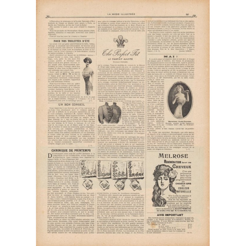 La Mode Illustrée paraissait toutes les semaines, et était accompagnée d’une planche de patrons tous les quinze jours en moyenne.