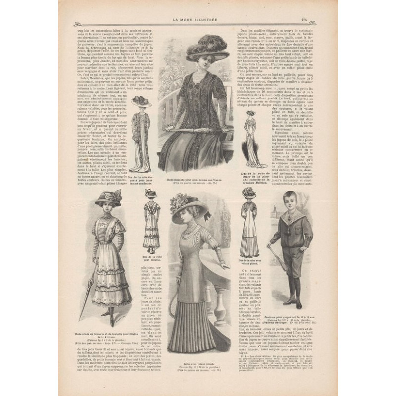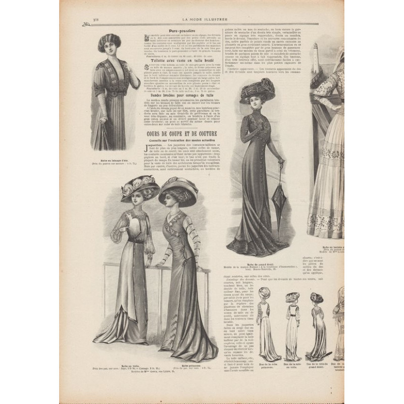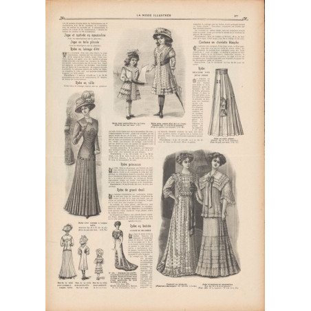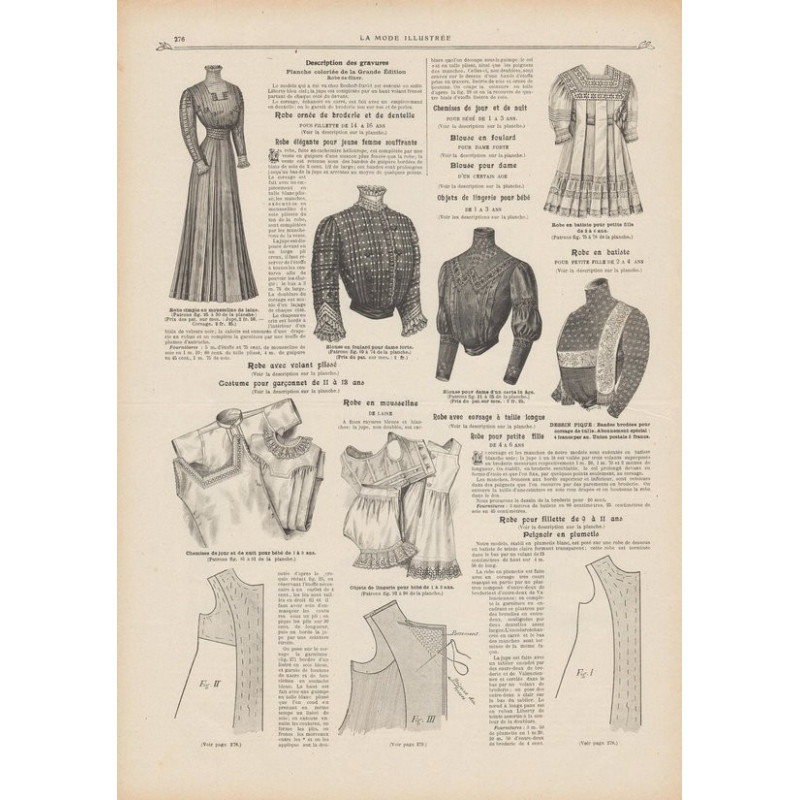 Chaque magazine présentait des modèles de robes , de lingerie , de corsets , mais aussi des vêtements d’enfants ou habits de poupées , avec de magnifiques gravures et les explications des modèles .