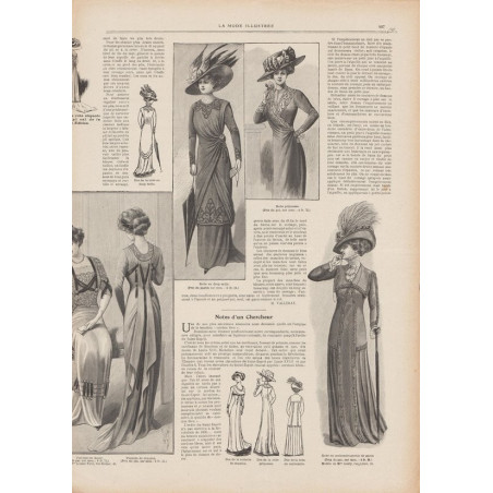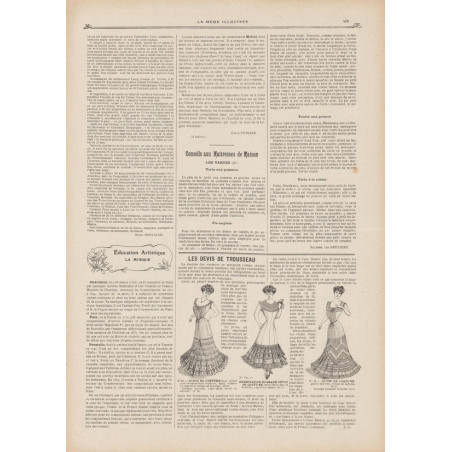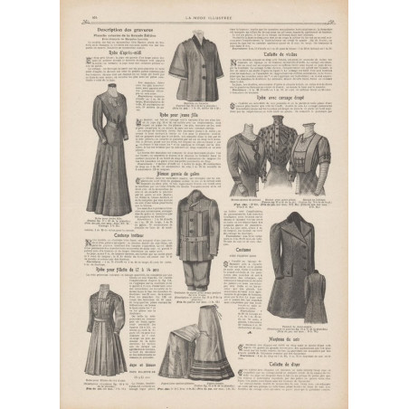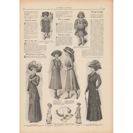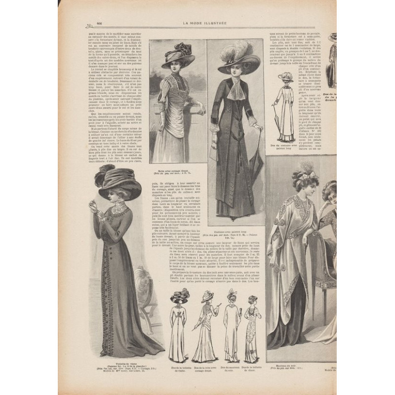 Chaque magazine présentait des modèles de robes , de lingerie , de corsets , mais aussi des vêtements d’enfants ou habits de poupées , avec de magnifiques gravures et les explications des modèles .