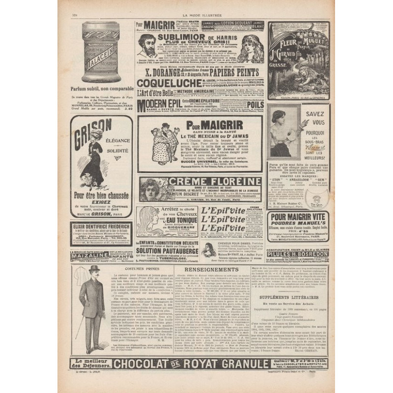 La Mode Illustrée paraissait toutes les semaines, et était accompagnée d’une planche de patrons tous les quinze jours en moyenne.