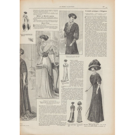 Chaque magazine présentait des modèles de robes , de lingerie , de corsets , mais aussi des vêtements d’enfants ou habits de poupées , avec de magnifiques gravures et les explications des modèles .