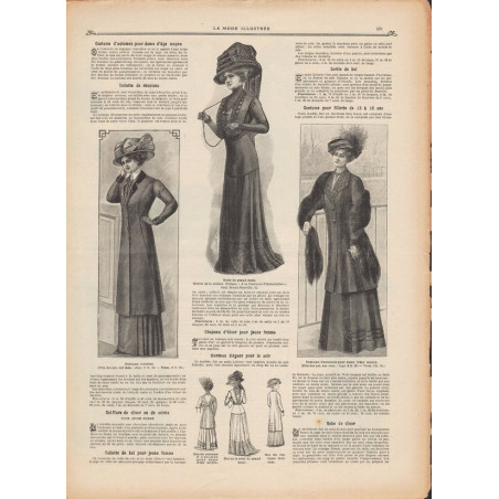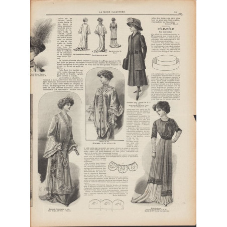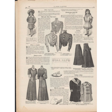 Chaque magazine présentait des modèles de robes , de lingerie , de corsets , mais aussi des vêtements d’enfants ou habits de poupées , avec de magnifiques gravures et les explications des modèles .