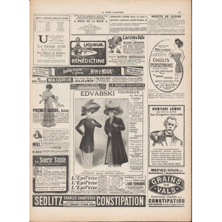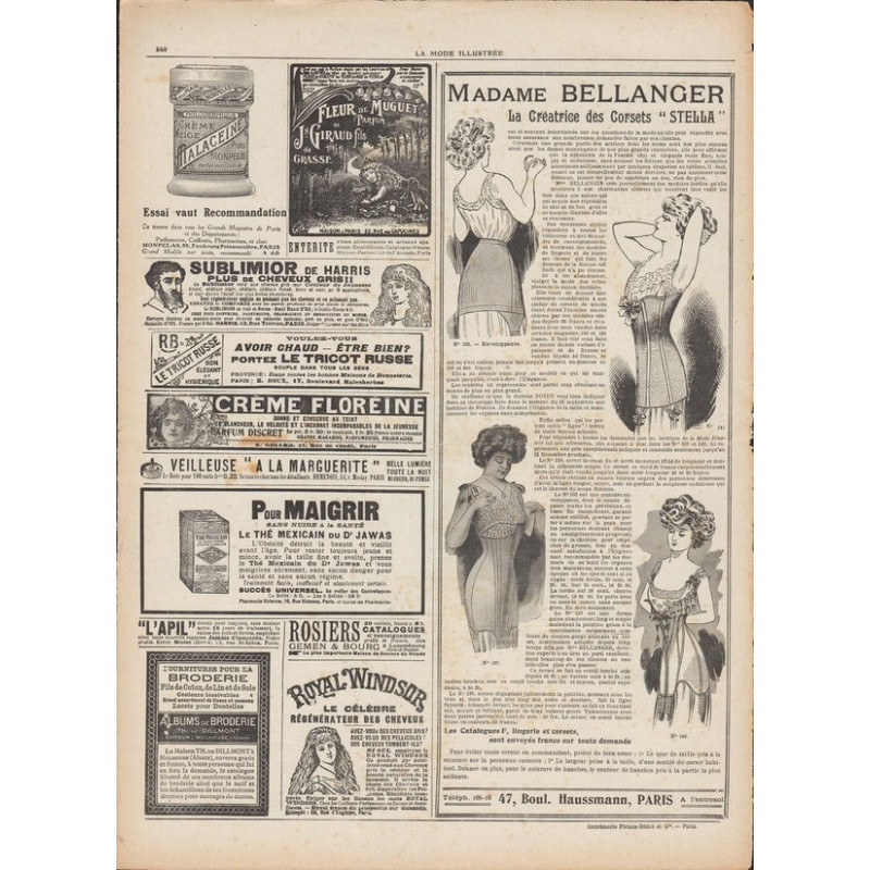 La Mode Illustrée paraissait toutes les semaines, et était accompagnée d’une planche de patrons tous les quinze jours en moyenne.