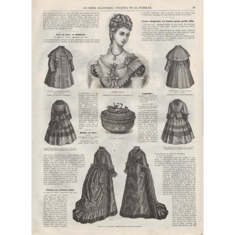 Chaque magazine présentait des modèles de robes , de lingerie , de corsets , mais aussi des vêtements d’enfants ou habits de poupées , avec de magnifiques gravures et les explications des modèles .