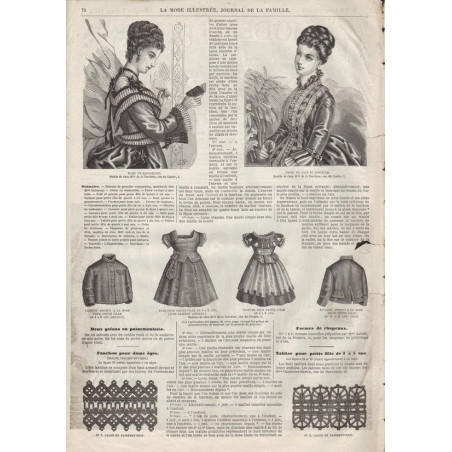Chaque magazine présentait des modèles de robes , de lingerie , de corsets , mais aussi des vêtements d’enfants ou habits de poupées , avec de magnifiques gravures et les explications des modèles .
