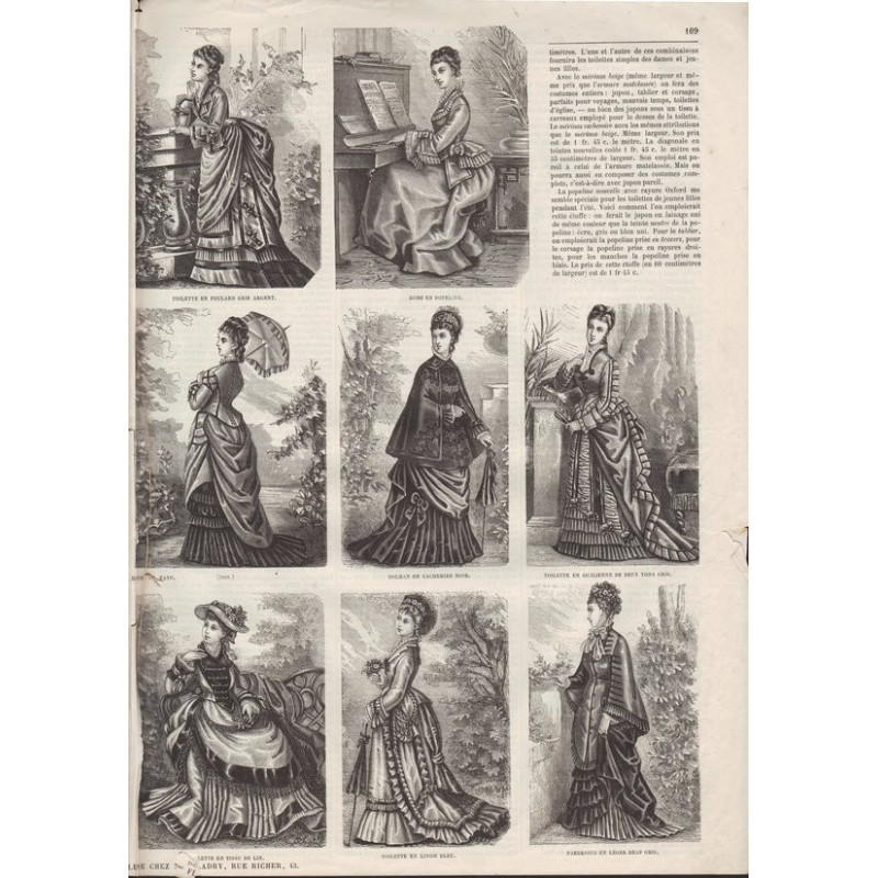 Chaque magazine présentait des modèles de robes , de lingerie , de corsets , mais aussi des vêtements d’enfants ou habits de poupées , avec de magnifiques gravures et les explications des modèles .