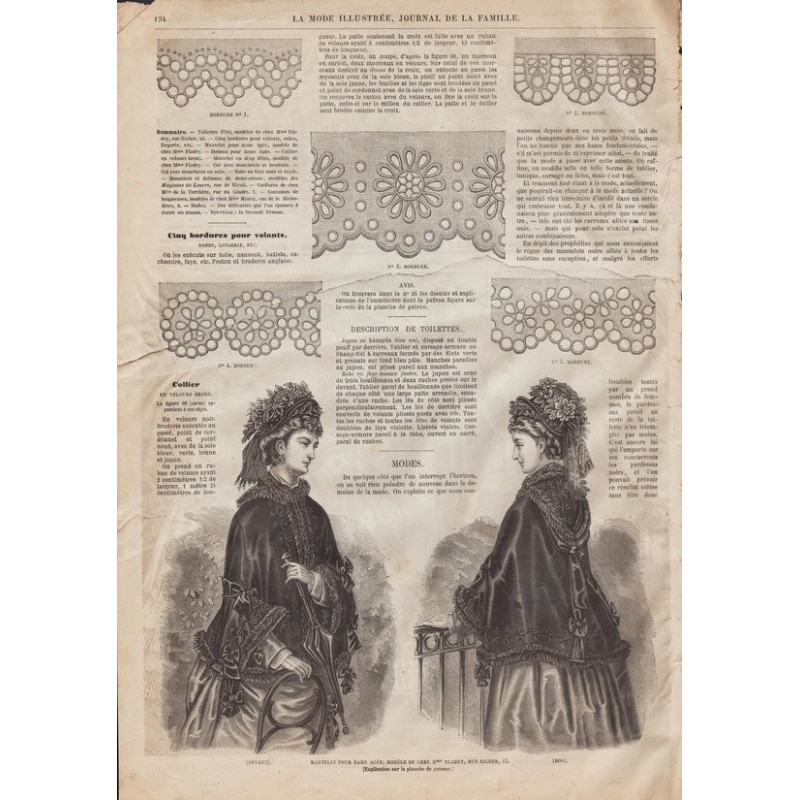 La Mode Illustrée paraissait toutes les semaines, et était accompagnée d’une planche de patrons tous les quinze jours en moyenne.