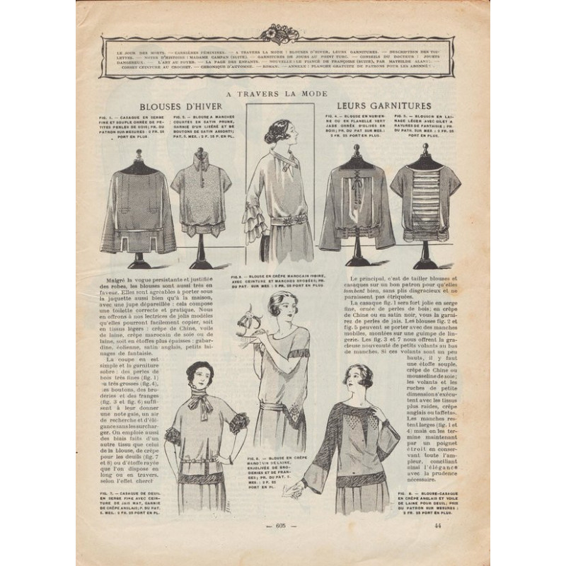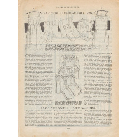 Chaque magazine présentait des modèles de robes , de lingerie , de corsets , mais aussi des vêtements d’enfants ou habits de poupées , avec de magnifiques gravures et les explications des modèles .
