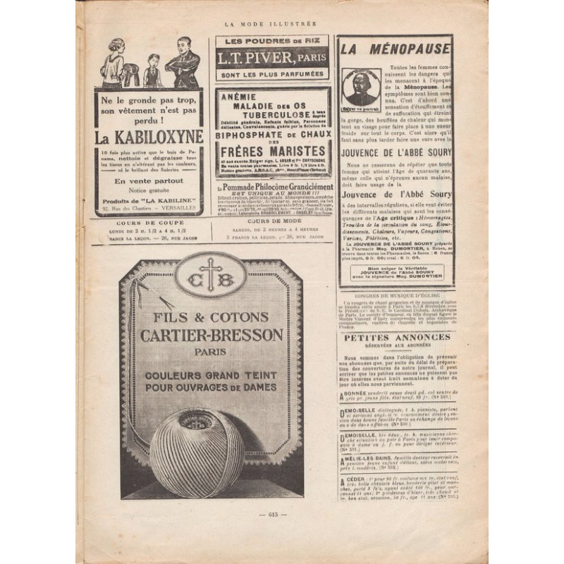 La Mode Illustrée paraissait toutes les semaines, et était accompagnée d’une planche de patrons tous les quinze jours en moyenne.