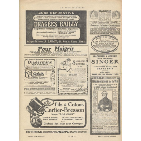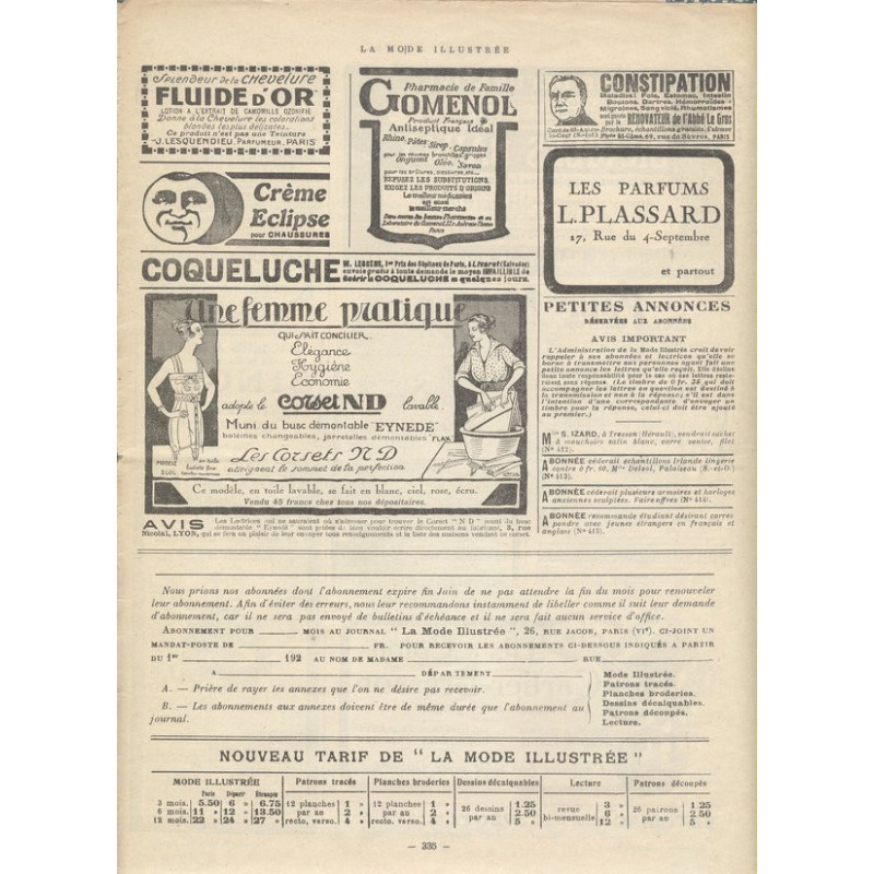 La Mode Illustrée paraissait toutes les semaines, et était accompagnée d’une planche de patrons tous les quinze jours en moyenne.