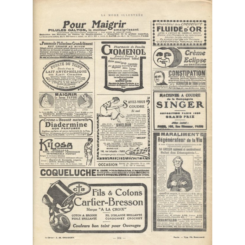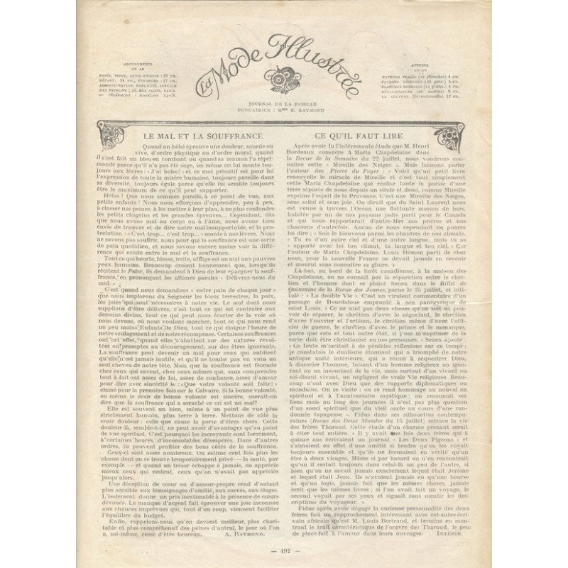 La Mode Illustrée paraissait toutes les semaines, et était accompagnée d’une planche de patrons tous les quinze jours en moyenne.