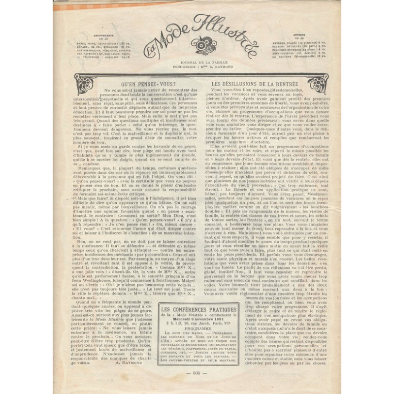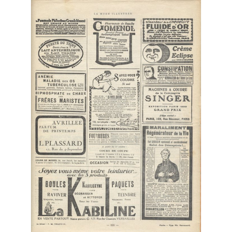 La Mode Illustrée paraissait toutes les semaines, et était accompagnée d’une planche de patrons tous les quinze jours en moyenne.