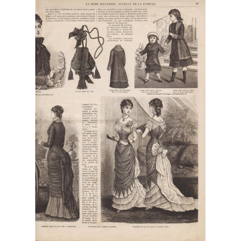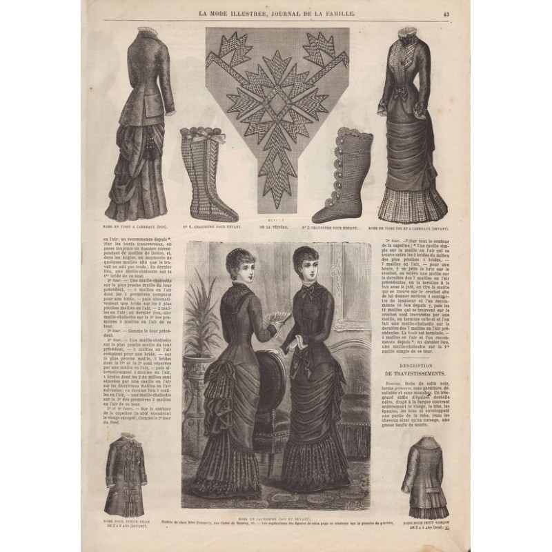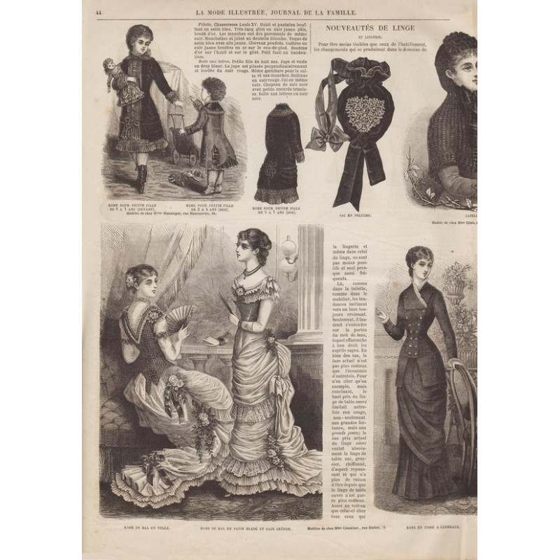 Chaque magazine présentait des modèles de robes , de lingerie , de corsets , mais aussi des vêtements d’enfants ou habits de poupées , avec de magnifiques gravures et les explications des modèles .
