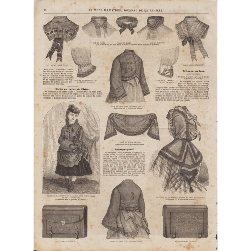 Chaque magazine présentait des modèles de robes , de lingerie , de corsets , mais aussi des vêtements d’enfants ou habits de poupées , avec de magnifiques gravures et les explications des modèles .