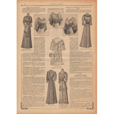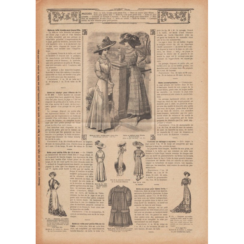 Chaque magazine présentait des modèles de robes , de lingerie , de corsets , mais aussi des vêtements d’enfants ou habits de poupées , avec de magnifiques gravures et les explications des modèles .