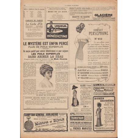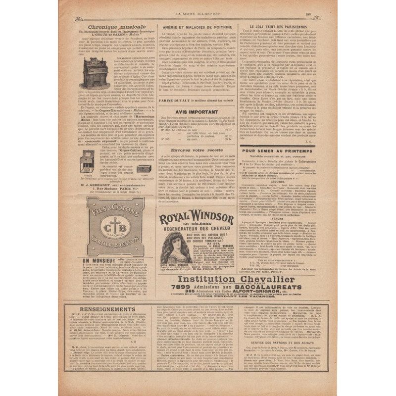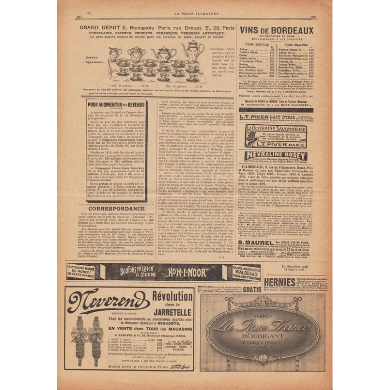 La Mode Illustrée paraissait toutes les semaines, et était accompagnée d’une planche de patrons tous les quinze jours en moyenne.