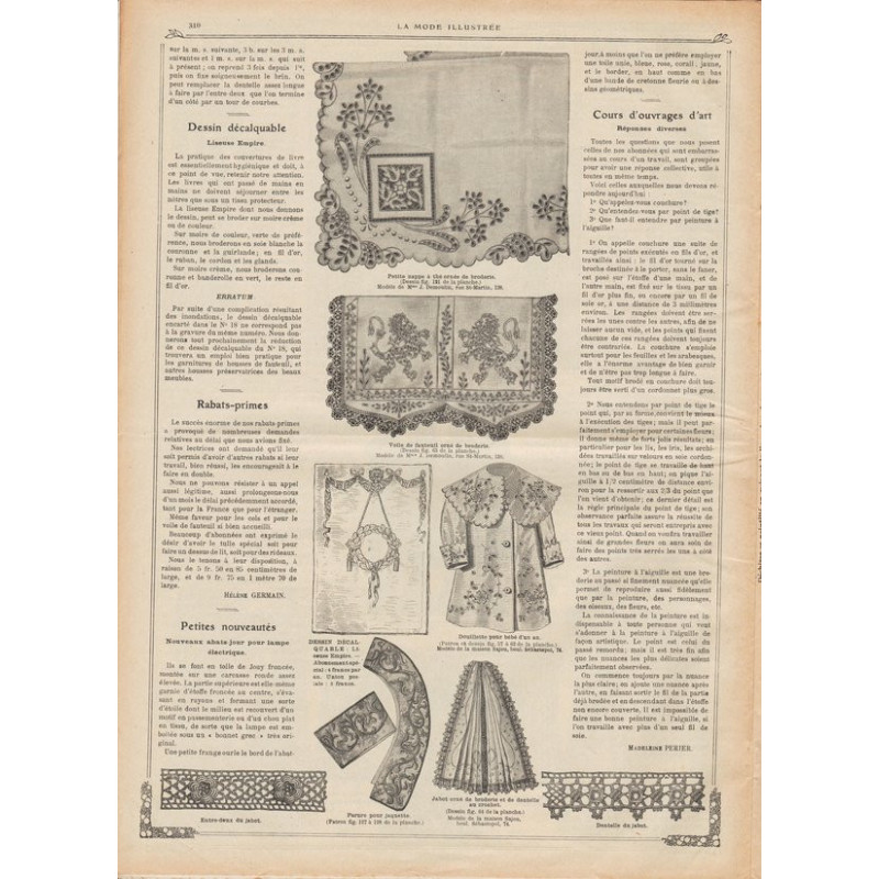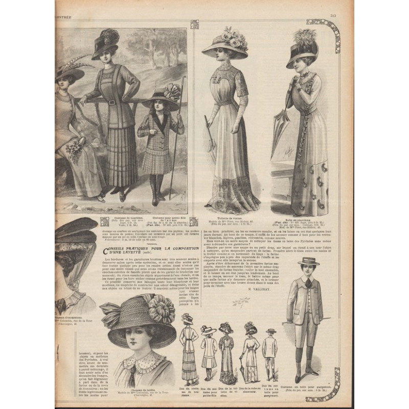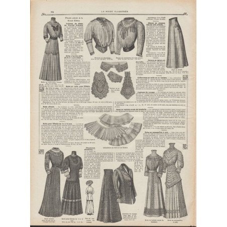 Chaque magazine présentait des modèles de robes , de lingerie , de corsets , mais aussi des vêtements d’enfants ou habits de poupées , avec de magnifiques gravures et les explications des modèles .