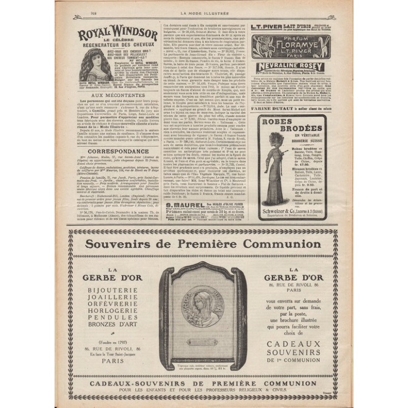 La Mode Illustrée paraissait toutes les semaines, et était accompagnée d’une planche de patrons tous les quinze jours en moyenne.